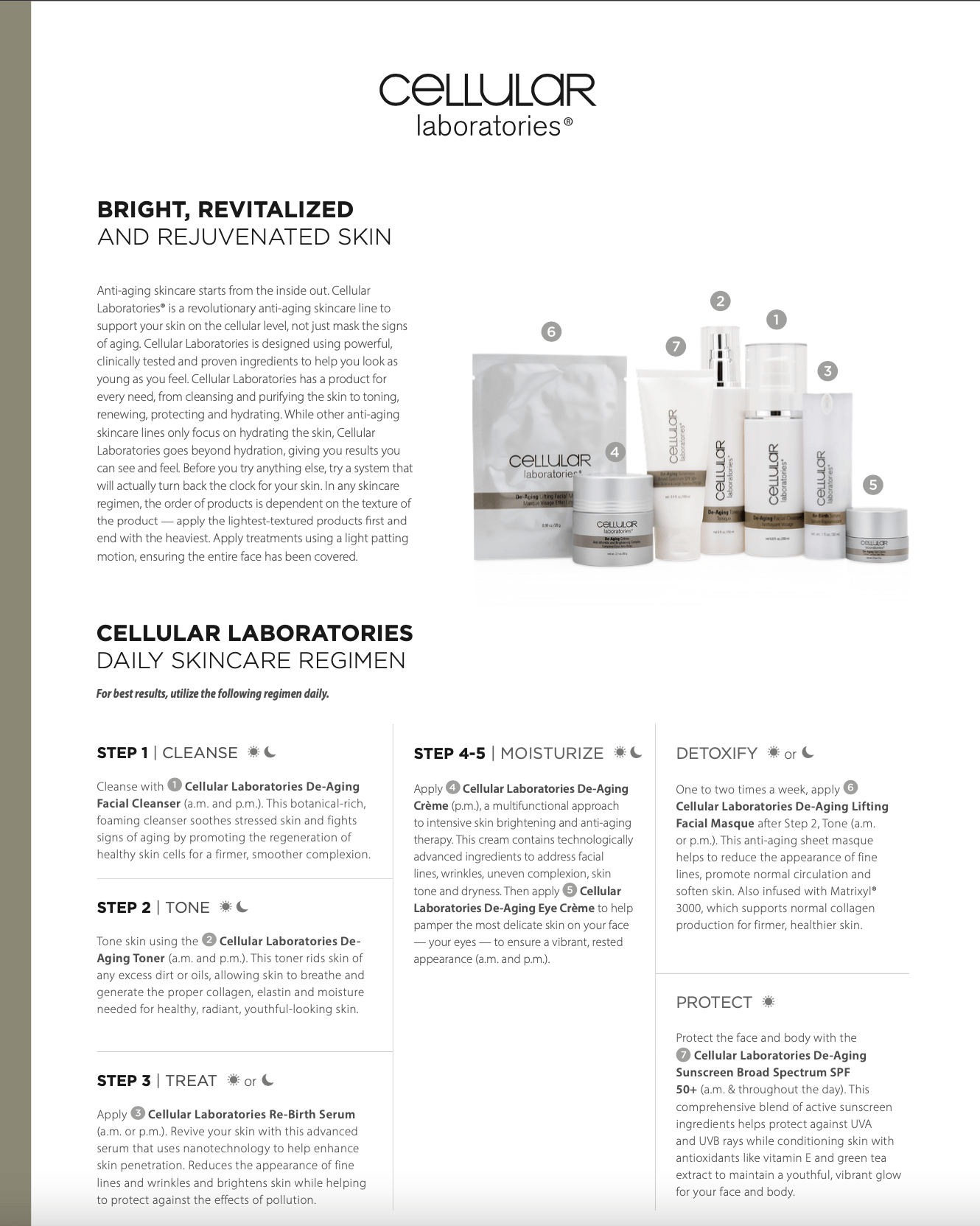 Please note, all of our skincare brands can be intermixed to customize your regimen even more, so you don't have to stick with one line! These guides are to showcase each line separately. Click on each guide to download your own copy.