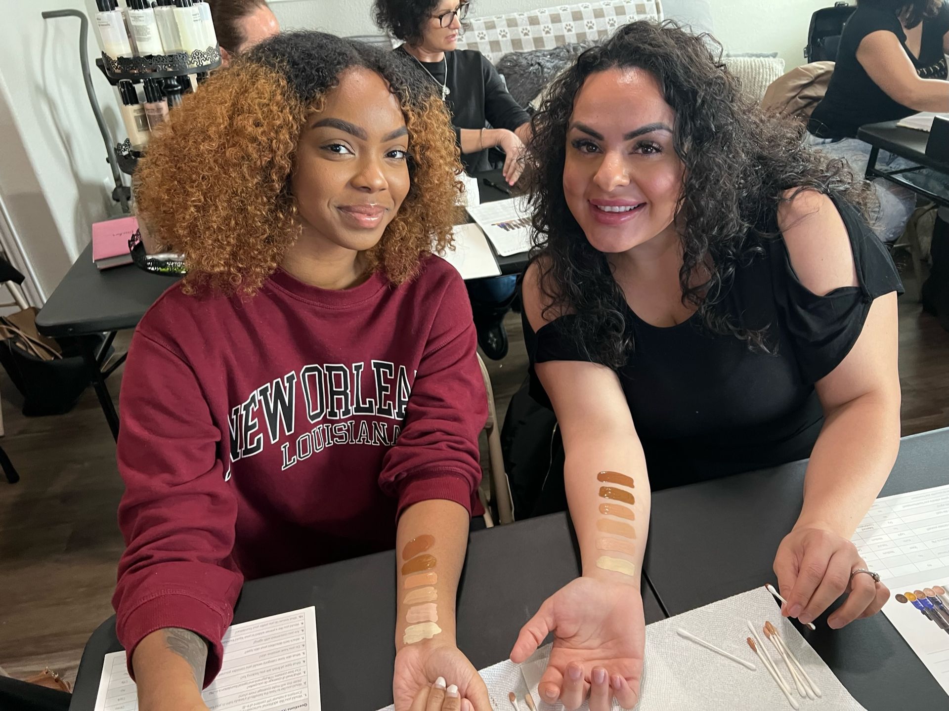 Leigh and Martha kicked off the event by offering the Custom Blend Certification Course where attendees learned how the MOTIVES CUSTOM BLEND SYSTEM offers not only an incredible product that is healthy for your skin, but a turnkey system that provides the artist the ability to customize both the product and the experience. Basic Color Theory was taught so that attendees understood the purpose and intent of the various products that we offer in our Custom Blend Mineral Kits. The Art of Communication was also taught, as this is essential in creating long lasting client relationships. The entire class had the opportunity to follow along, step by step, in creating their own personalized custom blended liquid and / or mineral powder. They learned how to work together with a team to maximize sales at a ‘Blend Your Beauty Event’ and how to properly brand themselves and promote the product. Lastly, about the incredible income potential custom blend has to offer.